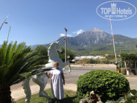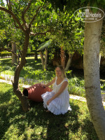 Территория отеля, не большая, но довольно таки зелёная(мандарины, лимоны, елки, пальмы), гуляют куры/петухи, кошки