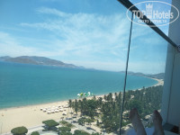 Прилетели в 5 утра,в отеле были уже в 7.00. На ресепшен одна слабоговорящая по русски девушка,но персонал старается понимать гостей.Без внимания мы не остались.Подошел парень с привтственными прохладительными напитками и электронным переводчиком. Написал,что мы можем сдать чемоданы в камеру хранения и отдохнуть на 2-м этаже до расселения.Мы решили пойти поменять деньги,покушать и на выходе оставили презент:шок-д Аленка и 2 магнитика Спб.Вернувшись в отель к 11.00. нас сразу поселили на 14 этаже с видом на море как и заказывали.Номер большой,все чисто,матрас и подушки удобные,постельное белье новое. Мыльно-рыльные обновляли каждый день.На маленькой сушилке на балконе сдувает белье.Совет:берите веревку и прищепки.Чаевые за уборку оставляли по 10-15 тыс.донгов.(30-40 руб.) )))) Всех все устраивало.Wi Fi в номере нормальный,TV 3 русских канала.