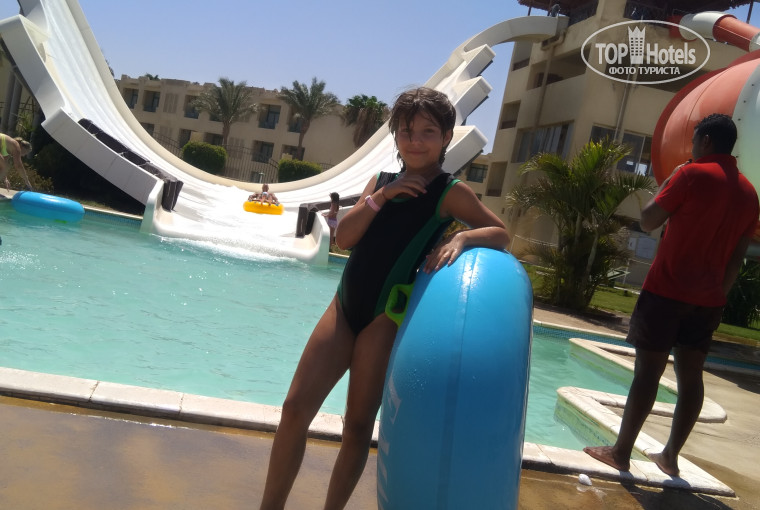 Отдыхали в Египте впервые. Приехали в отель около 19.00 и начался квест (наше заселение)...закончился он тем,что мы посмотрели два номера (они нам не понравились),дали 10 долларов и поселили нас в номер 8911 (недалеко от аквапарка). Кондиционер работал, холодильник тоже,была большая двуспальная кровать, для ребенка принесли кровать минут через 10-15.Душ работал,вода горячая была,неприятных запахов не было. Сейф работал,был телик. Комната была на втором этаже,вид из балкона был на бассейн. Еда понравилась. Выбор большой.Но хотелось побольше фруктов. Алкоголь вообще некакой...От вина даже изжога была. Персонал в столовой был очень отзывчивый, улыбчивый. В баре(главный корпус) бармены иногда включали мороз.Аквапарк шикарный,дочке очень понравилось. Не работала только одна горка,но и без нее было всего достаточно. Мальчикам, которые следили за безопасностью ,отдельное спасибо!море....пляж.....это просто сказка!!!!вода прозрачная,рыбки прям возле ног плавали. Пляж чистый, людей было не много. Лежаков хватало , когда не прийдешь. Бассейны были полупустые. Вода чистая. Территория большая. ухоженная. Домой вернулись с хорошими воспоминаниями и эмоциями.Дочка Полина ,передает большой привет этому мальчику, который будет на фото.