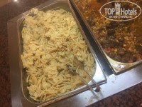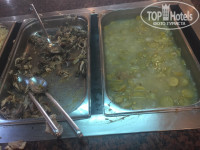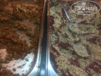 Сказали в 12 обед, идите, потом приходите на ресепшн. Поднялись в столовую к началу - жуткая грязь и вонь. Сели на улице, подруга пошла за едой и вернулась (внимание!!!) - с огурцами и хлебом, со словами - это все, остальное помои. Я не поверила и вуаля - фото прилагаю, это еда для свиней!!!! Никак иначе. Даже овощные салаты воняли кислятиной. Нет даже колы - только юппи. На обеде подслушали, что всех селят в дальние корпуса, где все не работает и даже змеи в траве. Поев огурцов, вернулись на ресепшн, дали 10$, сказали чтоб поселили в основной корпус. В 13:00 мы были в номере. Телефон не работал, из стен торчали провода, телевизор не работал, кондер дул горячим воздухом. Из плюсов - вид и относительно чистое постельное белье.