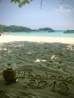 Заселение прошло за 10 минут, выдали карту-ключ, талоны на завтраки и бумажулю с логин паролем от ви-фи. Номер на 24 этаже (из 25 (кстати 13 этаж отсуствует, суевенрые тайцы :D)), дверь номер 9. Вид из номера божественный - море, закат, острова... И тут мы понимаем, что брали то стандарт, а заселили в делюкс. Это у них, как я понял такая замануха, т.к. сезон дождей (которых на протяжении дальнейшего отдыха и не было), имеются свободные номера и если тебя все устраивает - доплачивай за дальнейшие дни проживания по 300 бат/сутки, нет - выселяют на след день в твой стандарт (для нас была подготовлен номер 6 на 19 этаже с видом на сад и боковым видом на море). Кстати, с любого номера видно море, только стандарт и супериор - это боковой вид. Про нижние этажи ничего не могу сказать, так же как и про здание без башни (туда китайцев селили). Но мы решили доплатить за остальные дни проживания и ничуть не разочаровались в этом. В номере две огромные кровати, полуторки, телевизор, тонна каналов, есть два русских, большой кондей, холодильник с минибаром (дорого!), сейф, фен, лежаки на балконе, столик, ви-фи работает на 5-, смотрели и фильмы и трансляции из России. Убирались каждый день, все мыли, чистили, но мы оставляли на чай по 10-20 бат.