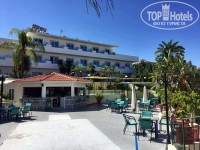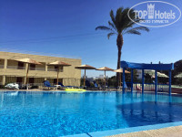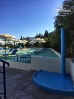 Территория. Отель состоит из двух корпусов: основного двухэтажного здания и дополнительного корпуса BLUE. Территория отеля ухоженная, зеленая. Растут пальмы, оливковые и банановые деревья, цветы, бегают ящерки. Два бассейна: детский лягушатник и взрослый большой бассейн с глубиной от 1,1 до 1,9 метра. Терасса для загара с бесплатными лежаками, душ. Рядом с бассейнами находится бар со столиками. Бар работает с 10:00 до 22:00. Для тех у кого полупансион все платно, у кого все включено бесплатно мороженое, кофе, чай, пиво, вино, газированные напитки, сок. Импортный алкоголь платно.