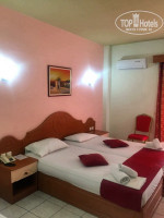 Номер. Примерно в 12:00 нам выдали ключи от номера 201. Номер категории Standard, расположен над ресепшеном с видом на бассейн, парковку и территорию. Номер просторный. В номере: большая двухспальная и односпальная кровати, холодильник (бесплатный), кондиционер (бесплатный), телевизор с плоским экраном (русских каналов нет), туалетный столик с зеркалом, шкафы с полками и вешалками. Ванная комната: фен, жидкое мыло, душевая со шторкой. Душ - это огромный минус в номере: вода по всей ванной комнате, шторка постоянно липнет к телу, если ее не закрывать, то воды будет еще больше. При этом пол кафельный и от воды очень скользкий. Видимо на этот случай в ванной висит телефон, если кто-нибудь подскользнется и упадет. Большой балкон с сушилкой для белья, столик, стулья, пепельница. Уборка номера каждый день, через три дня меняли белье, полотенца. Продление номера до 15:00 стоит 30 евро, до 18:00 - 40 евро.