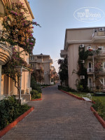 Территория отеля небольшая (длинная улочка, вдоль которой стоят четырехэтажные корпуса), но чистая и ухоженная. Территория зеленая, везде растут красивые цветы, пальмы. На балконах домиков также присутствуют цветы (очень красиво смотрится). Справа от отеля находится пустырь, а слева за забором громадный корпус отеля Hedef Beach Resort & Spa. Не завидую тем, кто жил в домиках возле столовой. Громкая музыка целый день из соседнего отеля. Мы проживали во втором домике от ресепшина. Тишина и спокойствие.