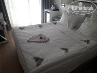 Заселились в районе 14 часов, номер во втором корпусе, вид на гору. Этаж достался первый. Номер крошечный, балкончик ну очень маленький, только постоять. Все остальное очень даже хорошо. Уборка, мини бар. Даже сердечки на кровати крутили)