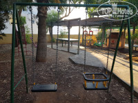 Есть простая детская площадка – качели, теннисный стол, домик, горка, огромные шахматные фигурки, крокодил-качалка. Всё очень «не новое» (кроме качелей).