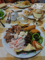 На завтраки всегда были яйца вареные, омлет, глазунья, колбасы, сосиски, сыры, брынза (ооочень вкусная!), бекон (изумительный!), лучок во фритюре, картофельные шарики, фасоль в соусе, овощи свежие, зелень, каша молочная, тосты, масло, оливки, разные виды хлопьев с молоком, кексы (тоже вкусные), шоколадная паста. Из напитков – соки (не особо вкусные), чай, кофе, горячий шоколад (всё из аппарата). Напитки включены в завтраки. А вот ужин уже без напитков, только за доплату.
