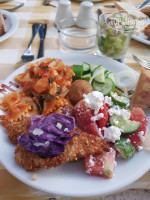 Рядом с отелем есть прекрасная уютная таверна EVINOS. Чаще обедали здесь. Вежливый персонал, вкусная еда, огромные порции, бесплатный wi-fi. Мини мясное мезе на двоих 25€. Королевские креветки с рисом около 9€. Паста 9-12€. Пиво 0,33л – 2,6€. Сытно, вкусно.