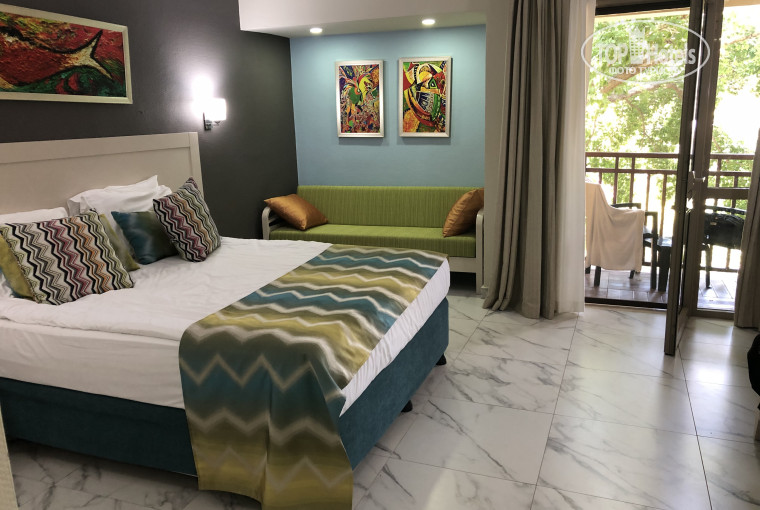 Отдыхали в октябре семьёй. Отель нам понравился. Все на очень достойном уровне. Трансфер из аэропорта индивидуальный, что конечно очень удобно. Приехали в 7 утра, заселили в 11. Номер большой, работало все исправно, новое, чистое бельё, полотенца. Удобные матрас и подушки. Для ребёнка хорошая дополнительная кровать(правда, немного скрипела). Запаха и в номере и в туалете нет. По уборке и пополнению мини-бара тоже нареканий не было. Территория отеля просто прекрасная!!!! Гуляешь и любуешься красотой. Особенно понравилась центральная аллея. Несколько бассейнов, все с барами, везде свободные лежаки. Вай-фай по всей территории. Питание хорошее, немного скудноват завтрак, на обед и ужин разнообразно и вкусно. Вообще поесть и выпить можно везде и всегда. На каждом баре есть карта напитков, многие импортного производства, только вина местные. Персонал очень внимательный. Наш рейс вылета был задержан- на ресепшн пошли на встречу, со скидкой продлили номер до 20.00. Официанты тоже умнички- все быстро и с улыбками. Пляж большой, лежаков много, только многие заняты с раннего утра. На море первые 2 дня были небольшие волны, из-за этого вода была мутноватая, потом установился штиль и вода стала чистейшая. Теперь о небольших минусах, они не портят отдых, но всё-таки. В номере нет халатов, утюга, зубных и бритвенных принадлежностей, лосьона для тела. Если есть вопросы, постараюсь ответить. Всем хорошего отдыха!