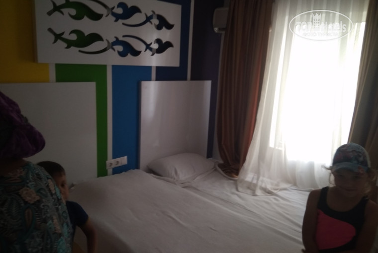 И в помощь с собой взяли маму и забронировали два стандартных номера, но по приезде в отель сообщили, что был дождь что-то там промокло и номеров нет, могут разместить только в одном Фэмили всех шестерых или ехать в другой отель где есть отдельные номера... После ночного перелета были очень уставшие и согласились поехать в другой отель Парк Сиде, но он нам очень не понравился, не было детской игровой площадки и номера очень маленькие и без балкона предложили... Поехали обратно в Смайл Парк где разместив нас шестерых в Фэмили для четверых обещали дать вторую комнату через пару дней, но... Так и не дали.. предоставили раскладушку для одного из детей, поставив которую ходить по комнате было супер неудобно, и детская кроватка была без матраса, только простынка и все...