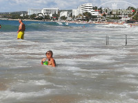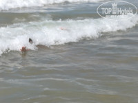 пляжа нет, т.к. все заставлено шезлонгами. Шезлонги занимают в 5 утра видимо. Нам было все равно, т.к. почти все время проводили в море. Если отойти на право по берегу в сторону отеля ванесса бис, там широкий пляж и вход в море один песок(на нашем встречаются камни при заходе). Мы клали веще на шезлонги других отелей и уходили купаться.