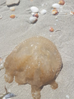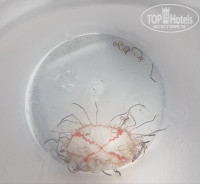 КОМАРЫ! полчища комаров!!! мухи, и медузы... причем разной масти, были даже прозрачные в воде, а если их выловить, то у них на воздухе появлялась каемка по краям и красный крест((( (см фото) жалили они длинными нитями которые в воде вообще не видно... ужаленных было очень много! все на пляж начали брать уже помидоры и лайм (это помогает от ожога! сразу приложить на ужаленное место и тогда не будет отека)