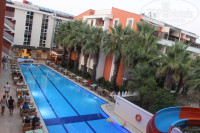 Хороший отель для непритязательных туристов. Удобное расположение: и до центра Кемера недалеко, и до пляжа пешком можно дойти с удовольствием, магазинчики рядом, турагенты тоже- выбирай на любой вкус и кошелек. Отель компактный, анимации, можно сказать, нет. Музыка с утра до вечера не грохочет, можно спокойно отдохнуть, даже поспать днем. Нам повезло: за небольшой бакшиш поселили в угловой номер в третьем корпусе, на втором этаже. С джакузи и видом на боковую улицу и гору. Убирались у нас в номере ежедневно, полотенца меняли по желанию, постель один раз. Мы попросили второе одеяло, дали в тот же день. Кондиционер работал прекрасно! Джакузи испробовали всего два раза)))) Все-таки приехали на море, оно просто прекрасное! Такое теплое в октябре!