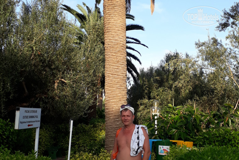 Прилетеле с друзьми из Волгограда, Пишу в режиме онлайн. Отдыхала других странах, как говориться, есть с чем сравнить. Была очень удивлена, что в отель едет два автобуса, на ресепшен сразу выстроилась очередь из 100 человек. Никогда такого не видела, чтобы на ресепшен была такая очередь, поняла, что отель пользуется большой популярностью, и у него высокий рейтинг. Т.к. прилетели вечером, еще до регистрации на ресепшене сразу всех отдыхщих стали приглашать на ужин. Расслелили всех быстро.Оставив чемонады в номере,пошли гулять по территории отеля.Отель находится на территории бывшего ботанического сада.Были поражены таким количеством разнообразным деревьев и кустарников.Такой природы не видели не в одной стране ещё. Чего только стоят оливковые деревья 1803 года, финиковые деревья, которые поднимаются высоко в небо, усыпаны ярко оранжевыми плодами.Также очень много цитрусовых деревьев, вся территория облагорожена и ухожена. Всегда чистота и порядок.Утром была встреча с представителем Пегаса.У нас была Виктория,которая очень доходчиво,понятно и интересно рассказала всё нюансы.