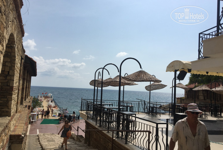 1) Пляж: песчано-галечный, очень маленький и неуютный, лежаков днем с огнем не отыщешь (ночью можно). Вход в море комфортен, но через метров 10 на дне лежат какие-то бетонные столбы, они достаточно большие и если о них не знать, то можно разбить колено или повредить ногу в легкую (все зависит от вашего роста). Пирс старый и неухоженный.