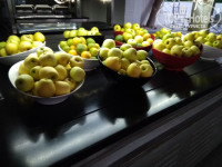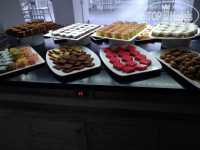 ПИТАНИЕ. Вполне достойное для трешки. Не было рыбы, мясо один раз, но большой выбор блюд из курицы (тушеная, жареная, колбаски, рулетики, шаурма, шашлык, наггенсы и пр.), из сои тоже что-то было, несколько гарниров, куча салатов, овощной нарезки. Фрукты – арбуз и апельсин нарезное, сливы, мандарины, яблоки цельные. На завтрак булочек нет, на ужин куча однотипных десертов, через день торт. Мы кушали с удовольствием, было из чего выбрать и собой взять на прогулку (если в свою тару, то на это закрывают глаза). Вышеупомянутые бабки, видимо, этим и пользовались, набирая много, мы же по пару фруктиков. Дважды в день женщина печет лепешки гезлеме в той зоне, где бар. Стульчики для детского кормления есть.