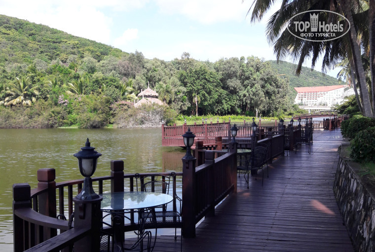 Отель полностью соответствует заявленной категории 4*. Мы жили на третьем этаже, в номере без балкона, но с видом на бассейн и пруд. Номера просторные, большие кровати, столик с двумя креслами, чайник и чай в пакетиках, фен и т.д. В общем, все необходимое присутствует. Уборка и смена полотенец ежедневно, постельное меняли один раз. Одно неприятное впечатление от номера – стойкий запах канализации в туалете. Не знаю, нам это повезло или это специфика китайских сантехников так прокладывать трубы, но, судя по всему, там отсутствовал так называемый «водяной затвор» душевого слива и несло оттуда… Поэтому вентилятор в душе не выключался круглосуточно, даже уборщики не выключали. Это, наверное, единственный минус отеля. Территория, может и не очень большая, но довольно приятная. Вокруг бассейна шезлонги с МЯГКИМИ матрасами (вы это оцените только после пляжа). Есть гамаки между пальмами и столики на берегу пруда. Вечером очень приятно посидеть в полумраке с баночкой пива. Если пойти вправо вдоль пруда – увидите мостик. Пройдя по нему окажетесь на противоположной стороне. Там есть два небольших домика со столиками внутри. Вечером они подсвечиваются и там тоже можно посидеть. При входе на ту сторону есть табличка с предупреждением, что могут выползать змеи, так что будьте внимательны. Из питания брали завтраки – без изысков, но вполне сносные, если учитывать китайский колорит. Но с детьми я бы не рекомендовал.