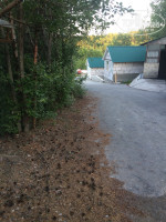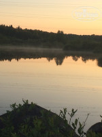 Строятся домики на территории, плиткой укладывается дорожка, многое в процессе. Успели погулять недалеко от забора и ворот, полоска леса и трасса. От здания кафе дорога к реке. Красивейший пейзаж в уходящих лучах и тишина. И зори тихие здесь, видно, и закаты…