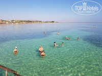 Пляж широкий, 1я линия, но если вы приехали на красное море за видом коралловых рифов и рыбок - вы разочаруетесь! Рифов здесь нет, рыбки мелкие, крупных - лишь парочка. А плавать вам придется в лягушатнике, который в зависимости от приливов-отливов - будет либо по колено-живот, либо по грудь. Фото в приложении. Лежаки очень неудобные, складные, легко прижать пальцы, регулируя их.