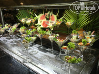 К качеству и разнообразию еды претензий нет, есть и морепродукты, и выпечка, и салаты, и фрукты и свежевыжатые соки, даже хамон и дор блю бывали. Есть отдельный кафетерий с пиццей, периодически работали грили, где жарили свинину,курицу или котлеты для бургеров. А вот к организации работы ресторанов претензии есть. Мы были 12 дней и получилось, что застали 2 недели. На первой неделе всё было отлично, но на второй основной ресторан со шведским столом на ужин не работал. Ужинать предлагалось в ресторанах аля карт. Туда можно было или записаться, или в такие дни (когда основной ресторан не работал) попасть в порядке живой очереди. Соответственно выбор еды там был скромнее, чем в основном ресторане. А при заказе по меню в качестве гарнира во всех блюдах была картошка, например. Да и обслуживание в аля картах помедленнее, всё-таки у местных транкила и всё такое. Не сказать, что оставались голодными, но закрытие ресторана и как следствие - более долгие ужины и меньший выбор расстроили. В выходные, когда приехала толпа местных, основной ресторан вечером работал. Вот такие эффективные менеджеры.