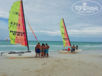 Ну и если вы дочитали до конца этот отзыв, то самое главное ради чего стоит лететь на Кубу 11 часов и жить на этом острове это конечно же Океан и пляж, они просто не реальные и не предаваемой красоты. Цвет океана меняется несколько раз в день в зависимость от туч, солнца, ветра, то он белый, то изумрудно голубой. Были и волны и гладь, купаться нормально в любую погоду, ведь вода +30, выходить вообще не хочется, можно сидеть часами. Очень удобный заход, песок на длинное расстояние можно пройти, вода по шею. Пляж в отличии от других отелей широкий, лежаки есть свободные, песок белоснежный. На пляже не играют в пляжный волейбол, аниматоры его даже не предлагают, для меня это большой минус. Зато на пляже от отеля можно за чаевые покататься на катамаранах (уплывали чуть от берега и на расстоянии 5 метров от нас плескались дельфины) и парусниках.