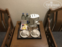 Первый этаж, балкон, вид на внутреннюю территорию с садом и бассейном (как и у всех остальных). Птички поют, красота. Сейф, холодильник, кондиционер, телек, кофе/чай, чайник, фен, вода питьевая. Полноценного шкафа нет. Шумоизоляция от коридора слабовата. Сам по себе номер-то может и неплох, хоть и старенький, а вот санузел и сантехника сильно подкачали. Вода в раковине не уходила, из коллектора капало (пока не заменили). Ванны нет, а прием душа, вмонтированного в стену, задуман прямо на полу за ширмой. Соответственно, грязно и сыро. Уборка номера чисто формальная: слегка подтирали пол, меняли полотенца, да заправляли кровать. Смены постельного белья за две недели и вовсе не было. Так что поборникам стерильной чистоты, наверное, имеет смысл поискать другие варианты.