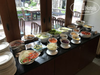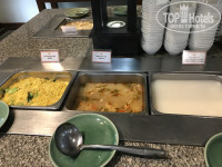 Вот это еще один, помимо расположения, козырь отеля. Такого вкусного и разнообразного питания на завтраках я не встречал ни в одном отеле Таиланда аналогичной ценовой категории. Начну с того, что мясные горячие блюда за 10 дней практически ни разу не повторились. Свинина, курица… Несколько раз была рыба. Супы, включая том ям. Гарниры: различные макаронные изделия, рис, картофель, капуста. Из необычного – палак панир (!) и другие блюда индийской кухни. Классика тоже присутствует: сосиски, омлеты, тосты, оладьи, салаты, соки, кофе… Фрукты (ананас, арбуз, драконье сердце, папайя, дыня), выпечка, джемы, йогурт, мед.