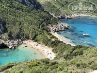 Приотельный пляж конечно сложно назвать пляжем, очень маленький и тесный в час пик, там можно поплавать уже под вечер, когда остаётся пару человек. Но дно галечное. Прекрасный песочный длинный пляж мы нашли, когда поехали по острову за закатом, называется Acharavi beach длиной 5 км. Если вы на машине, рекомендую съездить на пляж под названием Porto-Timoni, он дикий, и до него надо спускаться минут 40 от места парковки, но вид на него открывается просто сказочный. Лежаков и баров там нет, и ближе к обеду набегает много народу, поэтому лучше утром.
