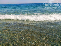 пляж мелкая галька, заход в море не пологий, около берега уже глубоко, но наш ребенок умеет плавать, это не проблема. Шезлонгов хватало на всех, т.к людей было не очень много.