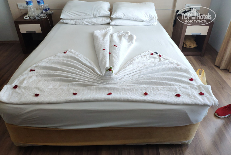 Были в этом отеле третий раз, правда, два предыдущих раза этот отель держал другой человек. Со сменой хозяина произошла и смена концепции: новые сотрудники, новый ремонт и номера (нам не понравилось), спа-центр (в который задолбали зазывать наши соотечественники, работающие там). За номер пришлось доплатить, т.к. изначально дали номер маленький и без балкона. Пришлось доплатить за балкон $40, раньше здесь с подобным не сталкивались, ну да ладно, в итоге имели маленький номер, но хотя бы с балконом. Еда сносная, всё на масле и мазике, я, например, отравилась омлетом. По сути для людей, которые не употребляют всякий джанкфуд, есть нечего, поэтому мы закупались в магазинах. Персонал - туши свет. Ничего не знают - ни номеров автобусов, ни достопримечательностей, подсказать не могут вообще ничего, за уборку не отвечают, постоянно курят у входа, а ты ждёшь их на стойке, они на тебя смотрят, но спокойно докуривают! Жесть. Мы всегда относимся не предвзято, при заезде дали €10, но они пролетели в трубу, официанты - какие-то подростки, которые не говорят по-английски; не здороваются, даже когда ты поздоровался с ними первый (ни по-английски, ни по-турецки). В ресторане грязно. Однажды кто-то пролил воду у кулера, из-за этого возле него стало скользко и не подойти. Так они поставили табличку "Осторожно! Мокрый пол!" И поставили её рядом. А воду не вытерли до самого конца обеда:) уборка хорошая, мы всегда оставляли деньги, а один раз нам сделали лебедей с лепестками роз)) Для меня этот раз поставил на отеле крест. Гораздо легче искать на букинге апарты, чем останавливаться в подобных местах. В Аланье куча отелей на любой вкус, поэтому баста...