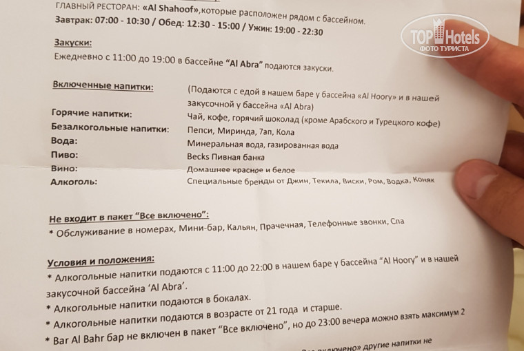 Отзовы не пишу, но очень хочу что бы никто более не повторил наш опыт. А ведь рейтинг у отеля 8.1 , а тут в вовсе 5 . Огромный плюс один из немногих плюсов персонал, слушают делают бегают вокруг. Пожалуй больших плюсов больше нет. Еда , тут фотограф старался больше чем тот кто планировал ресторан и никаких бесконечных рядов с едой нет, поесть можно , но не остаться голодным не более. Фруктов нет , нарезанный арбуз и куски дыни. Вот и олинулюзив. Все включено, включается в 1 месте с 12 до 22 и включает в себя бар, где за нормальое пиво или коктейль нужно заплатить, ну да ладно и это не беда. Хотя по фото бара минимум 3.. еще 2 я так и не нашёл. Ехали с мелкой и очень рассчитывали на горки фото которых изобилует в рекламе. На деле они закрыты , меняют плитку. Отелю 2 года и они уже решились на ремонт ?! Скорее горки это часть нового корпуса, хотя и читали массу отзывов у кого то были у кого то нет , ну да ладно мы же на море. МОРЕ тут тоже не все так просто. С 15 происходит отлив и появляется каменное дно , зайти в море уже не просто. А через 2 дня отдыха пляж и вовсе разнесли штормом, поплавали еще 2 дня в бассейне и веселились, а оставшиеся 4 дня провели в Дубае , в аэропорту встретили пару они смогли поплавать еще 1 день с момента шторма. Моя оценка 3, и то только за персонал.
