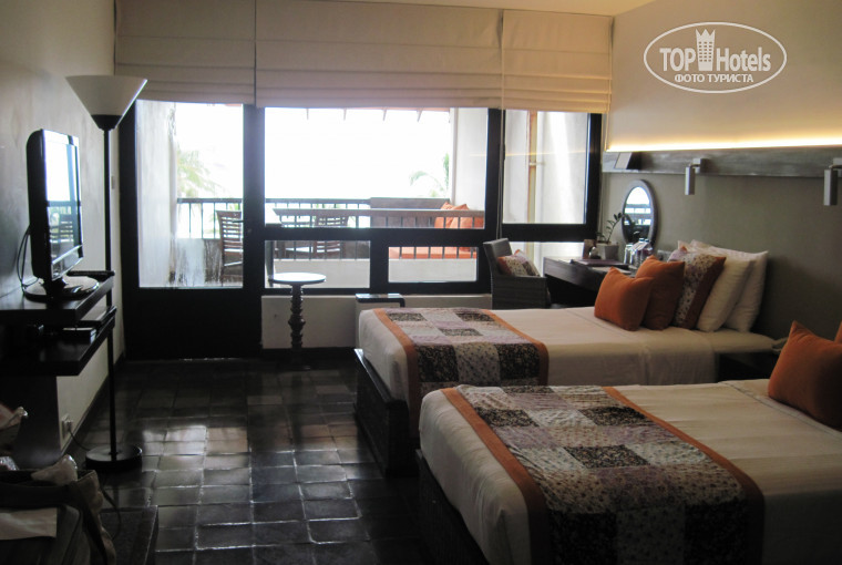 Номер очень хороший. Все работало, сантехника без нареканий, хороший фен. (Обычно в отелях слабенькие фены, их мощности на волосы средней длины не хватает – женщины поймут. Поэтому, я фен всегда беру с собой. В этот раз пользовалась отельным.) Все номера с окнами на океан, с террасой, на которой стоит стол, 2 стула и мягкий диван. Кондиционер централизованный, регулировать можно только температуру. Отключить его у меня не получилось. Но если установить на 25*, то будет не так холодно. Также в каждом номере стоит сушилка для воздуха, настроенная на 45% влажности, поэтому той влажности, что на улице, не ощущаешь. Телевизор приличный, есть один канал на русском. Розетка только одна, но адаптер (переходник) не нужен. Там 5 отверстий: по 2 парных и одно сверху. Если вставить вилку в нижние 2 отверстия, то прибор работает. В номере смежная с соседним номером дверь. Убирались рано утром и вечером приходили, спрашивали, всё ли в порядке, не нужно ли чего. Хотя уборка – чисто символически, но это везде. Воду в бутылках 0,5 л, пакетики с чаем, кофе и сахаром добавляли каждый день. Теперь по бару: в некоторых отзывах читала о том, что баром не пользовались, а при выезде им предъявляли счет (такие-сякие). Так вот, холодильник действительно заполнен под завязку напитками, но наверху, возле чайника и набора для чая-кофе стоят пакетики с печеньками и прочими снеками. А на них наклеена маленькая бумажечка: «Bar». И если вы их оприходуете, то придется заплатить. Русскоговорящей девушки по имени Галина, о которой писали в отзывах, уже нет. В день заезда в номер приносят комплимент от отеля – тарелку с фруктами. У меня в номере утюга и гладильной доски не было (если попросила бы, наверное, принесли бы, но мне не потребовалось). По вечерам, после ужина, культурная программа: живой звук, песни на английском, русском, украинском языках, национальные танцы. Комаров, мошек и прочих насекомых не было совсем.