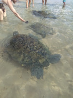 Теперь о ежах. Там, где купаются - ежей нет, дно песчаное. Но я видела морского ежа, которого выбросило волной там, где сильные волны, т.е. правее от отеля.
