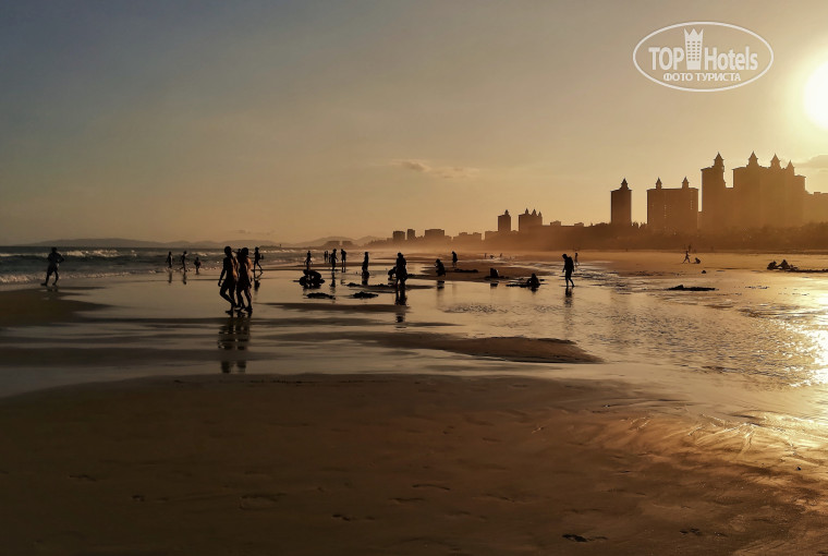 Его двенадцатикилометровая береговая линия обрамлена рощами кокосовых пальм и вечнозеленых хвойников. Сразу за ними – новые апарт-отели (высота многих поражает - достигает 30-40 этажей!), по вечерам они стояли темными (светились одиночными огнями). Таунхаусы, гольф-поля, прогулочные зоны. Основной контингент отдыхающих в БУХТЕ ЧИСТОЙ. ВОДЫ – состоятельные китайцы (партийная номенклатура), приезжающие с материка за умиротворением и тишиной. Сюда любят приезжать серферы- они ловят волну, наблюдать за ними одно удовольствие! Художники пишут пейзажи.