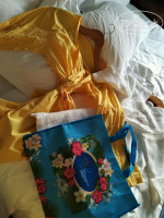 СПАЛЬНЯ с удобной двуспальной кроватью, приятным матрасом и постельным бельем. Индивидуальный кондиционер – охлаждал отлично (после прошлогодней Джербы – один из важных критериев при выборе отеля). Шкаф узковат (как раз по размеру китайцев), но вешалок хватало. Внутри: сейф (бесплатно), ярко желтые (в позитивной стилистике отеля) хлопчатобумажные халаты, сумка для пляжных полотенец, противогазы (для Китая это дело привычное), тапки (две пары взрослых, одна – детская). Прикроватные тумбочки с зарядкой для гаджетов.
