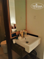 На ресепшен Главного корпуса в течение 10 минут получили номер (депозит при заселении 100 долларов) и, прихватив приветственный ланч бокс (помидорки черри с сыром и булочками), направились к корпусу напротив – 18-этажному зданию ANEX Building. Просторный холл, оформленный в экостиле (зелень и мох на стенах, этнические предметы декора), художественный салон (где можно пройти курс по традиционной китайской лепке из глины и купить интересные изделия). На лифте поднялись на 8-й этаж. Широкие коридоры, продуваемые ветром и наш номер Deluxe family Ocean View.