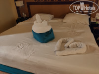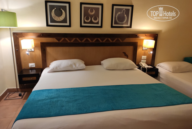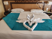 Прибили к ужину , сразу дали номер и одели браслеты. У нас был номер стандарт 3+1(257), он нас вполне устроил. Всё работало ( фен и сейф есть) .Друзей поселили в бунгало (430) , кровати сдвинутые были ( один матрас выше другого ) неудобно. И вид на какую то будку . Утром попросили поменять , пересели в стандарт ( 259) идентичный нашему.