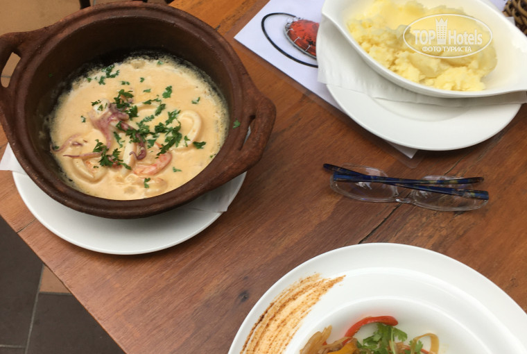 Питались мы в ресторане при отеле. У нас был полный пансион. Еда была шикарная и подавалась очень красиво. Все блюда были необыкновенно вкусные. Продукты всегда свежие привозили утром.