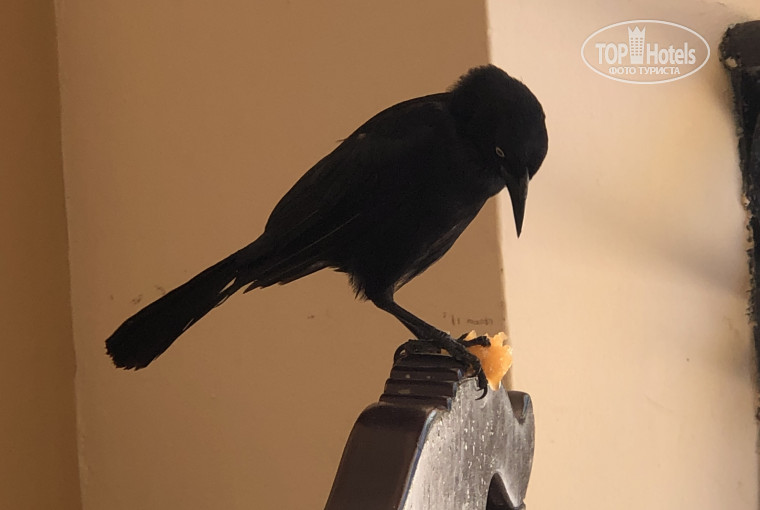 Le jardin. Просторно. Симпатично. Чисто. Ухожено. Пальмы стриженные, гименокалисы и кринумы цветут, даже манго перед фасадом. Без шика и изысков, но ничего дурного сказать нельзя. Дятлы и граклы орут как ошалелые, дракончики носятся по дорожкам и газонам, лепота. Бассейнов я насчитал два, большие, чистые, хлоркой пахнут. Большего про них сказать не могу, не окунался. Но латиносам дюже нравились, они там чуть не спать ложились.