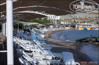 Пирс ,пожалуй, является наиболее выгодням для плаванья (ну конечно не с маленькими детьми). Основной пляж представляет собой узкую полоску с большим количеством лежаков. Пляж грязный, бычки, куски пластика, пачки от сигарет, огромное количество водорослей и прочий мусор ( и это в самом начале сезона, когда народу не так уж и много). Вход в море неудобный, камни, местами очень острые и крупные, для детей не очень комфортно будет.