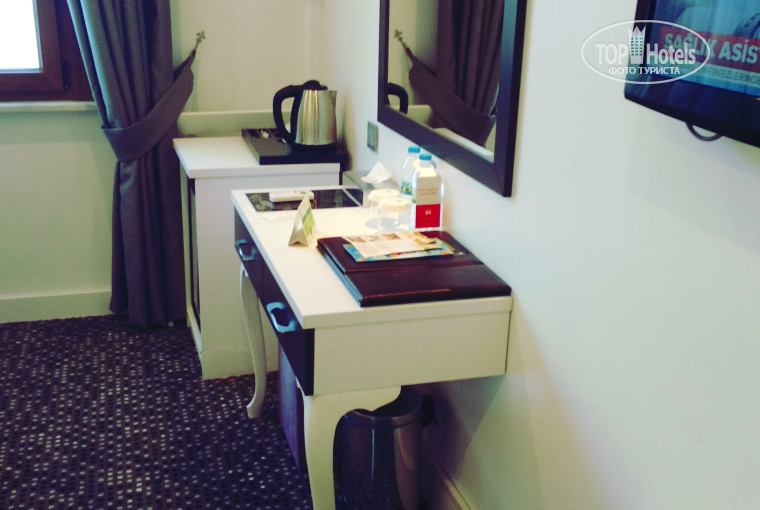 Номер не очень большой, но все есть:набор для приготовления чая и кофе, тапочки, принадлежности для ванны(гель, шампунь, зуб. паста). Недалеко от центра, виды Стамбула завораживают!