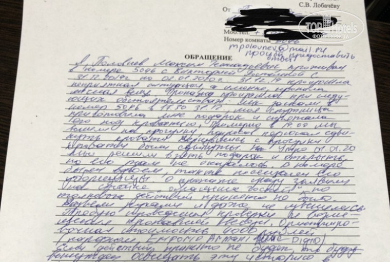 6. При написании я лично отказался от разговора с Вашей службой безопасности? Поясняю, до момента нашего отъезда Ваши сотрудники не предпринимали ни каких действий, меня это жутко раздражало, мы собрали вещи, съехав с номера обратились на стойку, сотрудник развел руками и сказал, что ни чем помочь не может. Я сообщил, что для меня Это не приемлемое решение. Сотрудник сообщил, что может позвать сотрудника безопасности или мы можем написать заявление. Я уточнил какая разница в этом? Нам ответили что ни какой, так как мы были на чемоданах, чтобы не ждать непонятно сколько непонятно кого, я решил написать письменное обращение, чтобы было бумажное подтверждение нашей проблемы, потому что на словах Ваши сотрудники такие любезные, но крайне бесполезные, я за 10 минут написал заявление и немедленно покинул Ваш отель. Мне очень неприятно, что Вы перевираете слова, цепляетесь к словам, пользуетесь, тем что мы были на эмоциях в состоянии аффекта, и пишите такие слова. Я надеялся, что для Вас имидж имеет значение, тем более репутация в текущей конкуренции очень важна, но нет, Вы обвиняете меня в намеренно и необоснованном пороченье Вашего имиджа. Можете и дальше ничего не делать и прикрывать Ваших сотрудников. Вы правы, 6 тыс. рублей не супер огромная сумма, и я и моя девушка не умрем потеряв эти деньги, но я надеюсь, что мои отзывы здесь и на других ресурсах уберегут других людей от Вашей безответственности, попустительстве и воровства в Вашем отеле. Со своей стороны я продолжу распространять информацию в социальных сетях, сообщать своим знакомым и друзьям ситуацию, которая случилась и обстоятельства.