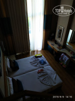 Отдыхали в этом отеле в начале сентября 2019 г.Начну сначала-у нас была большая разновозрастная компания-7 взрослых и 3 детей(11,3, и 1 год).В отель мы приехали часов в 10,оформили документы,позавтракали,переоделись и пошли на море.До моря добираться совсем недолго,даже пешком,минут 5-7 вдоль живописной речки с огромными черепахами,затем по зеленой аллее вдоль соседних отелей,нас не напрягало совершенно.Так же постоянно курсирует шатл,с очень веселым водителем,только в его автобусе играет заводная музыка и все пассажиры азартно хлопают в ладоши))Пляж отличный-широкий,много лежаков,всегда находили место на нашу немаленькую компанию,заход в море пологий,с детьми просто отлично.На пляже есть снек бар,работает с 10 утра,наливают некрепкие алкогольные напитки,колу,можно брать из холодильника сколько угодно воды.В 12 можно уже перекусить-гезлеме,гамбургеры(собрать на свой вкус),фри,салаты,овощи и несколько видов мяса.Фрукты в изобилии,все свежее и подкладывают по мере необходимости.