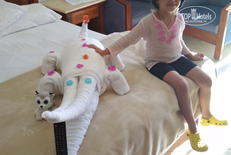 Номера не новые, но вполне хорошие, все работает. Проблем нет. Попросили поселить рядом - никаких вопросов, без проблем, отдельное спасибо Ахмеду - все сделал быстро, выполнил все пожелания и абсолютно бесплатно (как писали в других отелях - вымогали деньги), здесь такого нет. Приехали рано утром, сразу же ребенка с мамой отправил на завтрак. Заселил минут за 30-40, в 10-30 утра уже были в номере, пока ждали, официант принес соки и печенки.