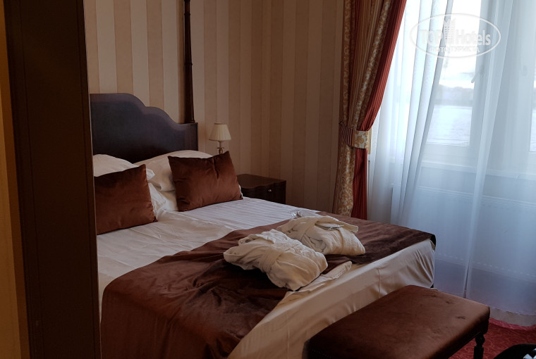 Сам отель находится на острове. Зимой там особо ничего интересного, просто парк. Но приятно, что вдали от городской суеты. Нормально покушать на острове негде, надо ехать в город. Здание и внутри и снаружи выглядит очень красиво и торжественно. Номера не большие, но все есть. Оформление в классическом стиле. Для молодежи даже слишком серьезно, как будто в гостях у интеллигентной бабушки в советское время (но это вообще стиль Венгрии, если что).=))) Наш номер был на 1 этаже, поэтому вид из окна был на крышу пристройки.(