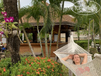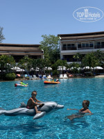 отдыхали в этот раз вчетвером, я+муж+ребенок+бабушка. Приехали в отель рано, около 11 часов. Готового номера не было, нам сказали, что заселение будет в 14 часов, т.е. по правилам. Мы переоделись в купальники и отправились к морю. В предыдущую нашу поездку в ноябре температура была примерно такая же, и у нас не было даже намека на обгорание. Но мы не учли, что влажность очень разная, сразу после сезона дождей солнце гораздо мягче. Поэтому искать в чемодане первым делом солнце защитное средство мы не догадались, и муж и ребенок за эти часы обгорели до болячек на носу, ушах и плечах. Все это время находились в море, или в тени, как казалось. Будьте осторожны! В 14 часов дали номер 2209 - это второй корпус, второй этаж. В номере все аккуратно, вид на кафе и бассейн. Перегородка из матового стекла с дверьми, две большие кровати, два кондея. Мини-холодильник, телек. Шкаф один с комодом из 4х ящиков. полок нет, только одна большая антресольная. В целом все хорошо, если не искать поводы придраться. Для меня нереально толстые и жесткие подушки! не могла спать совершенно. и действительно очень грязный кондей, пыль прям лежит слоем на створках. И очень не хватало миникухни как в соседнем Санвинге. Уборка нормальная, не зависимо от чаевых. Питание вполне достойное: овощной стол, выбор сосисок, мясные и куриные блюда меняются, гарниры несколько на выбор, омлет с начинками на выбор, глазунья, фрукты -папайя, дракон, арбуз и ананас ежедневно. Чай, кофе, сок. Кофе на мой взгляд ужасный)))))) но на отдыхе от него можно и отдохнуть. Пончики,круассаны, кексы, булочки, тосты. на детском столе арбузы чищенные, сладости, йогурты, бананчики. В общем, если вы адекватный человек, и не привыкли завтракать устрицами и трюфелями, вам достаточно будет еды, и качество хорошее. Территория удобная и достаточная. дефицита не испытывали, но для занятия более удобных лежаков или в конкретном месте приходилось проснуться пораньше, благо наша бабушка рано встает. Территория отеля заканчивается раньше, чем начинается пляж. Выход к морю и пляжу через территорию кафе LUX. а это значит, что и своего клочка пляжа с шезлонгами у отеля нет. либо лежать на песке без малейшей тени, либо везти/закупаться циновками и зонтиками, либо платить за шезлонги в многочисленных кафе от 300 до 500 батт, в эту сумму входит два лежака, зонтик, полотенца и напитки или еда на эту сумму! теоретически, вполне подъемно, но поскольку у меня сравнение идет с соседним санвингом, это прям минус отеля. впрочем разница в цене опять же компенсирует этот минус. Бассейны просторные, горка в среднем просто отличная! дети резвились целый день. Бассейны находятся на разных уровнях, в самом высоком вода самая теплая. Бесплатно можно поиграть в настольный теннис, бильярд. Детская игровая комната открыта весь день до 21, но игрушек там практически нет. Площадка с качелями и горкой для малышей отличная. Шикарная идея: счастливые часы в барах отеля, когда скидка на коктейли 50%, но к цене прайса не забывайте добавить налог и %за обслуживание. А в кафе LUX почти весь вечер просто коктейли по 100батт. WiFi на территории бесплатный без ограничений по количеству подключенных устройств, сигнал хороший. Большой плюс отеля, в сравнении с санвингом, близость к тайской деревне, где масса кафе, магазинов, аптек в пешей доступности. Отличный отель для семейного отдыха! ми