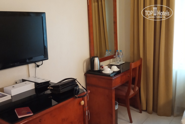 Итак, в ОАЭ была первый раз. Давайте с начала, заселение прошло ровно в 12. Мы приехали чуть раньше, около часа ждали на рецепции. Номер неплохой, но достаточно маленький, две кровати занимают почти весь номер, был шкаф с вешалками, гладильная доска и утюг,сушилка для белья, фен, холодильник, чайник. Чай/кофе докладывали каждый день. В целом для трех звезд, очень неплохо. Балкона нет.
