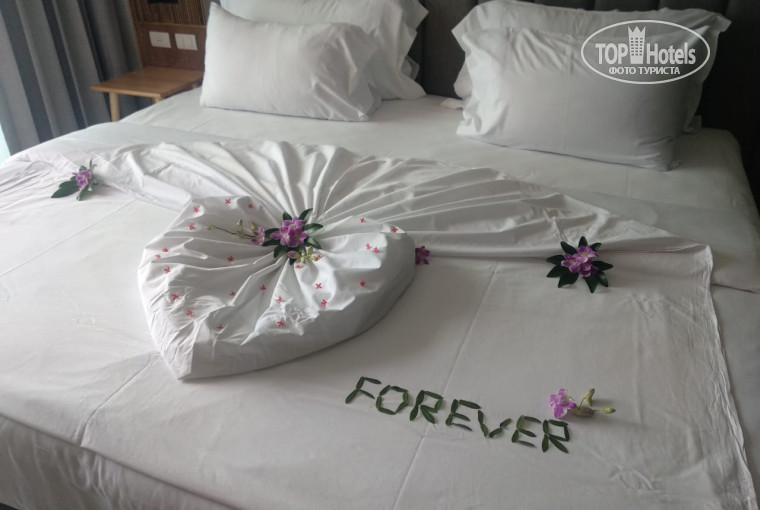 отдыхали парой в марте. При бронировании указали, что "молодожены", номер украсили - на постели выложили сердце и украсили живыми цветами - очень красиво и приятно. Номер был в новом корпусе 4. Номер хороший, новая мебель, чистый, балкон выходил на стройку и отель Центара (стройка не мешала при закрытом балконе, зато вечером тишина, музыки от кафе не слышно, утром птички поют). Полотенца меняли каждый день. Мини-бар пополняли каждый день, но в том случае, если пользовались (не выпили сок, другой не поставят). Море недалеко, идти минут пять., через дорогу - переходили без проблем. Завтраки - нам всего хватало (яйца, супы, бекон, рис, овощи, выпечка,соки, кофемашина), много фруктов, что очень порадовало. Часто на ужин брали в макашницах на улице или ходили в кафе Ying (прямо по улице в сторону храма, за отелем Simplitel), вкусно готовят и приемлемые цены. Экскурсии брали озеро Чеолан и 4 жемчужины Андамана. Острова - это сказка!