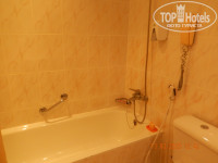В ванной вся сантехника работала, хороший напор воды, в том числе горячей. Из моющих средств только жидкое мыло и гель в диспенсерах, остальное надо везти с собой. Над ванной можно натянуть верёвку, но сохнет всё очень плохо даже с включённой вентиляцией.