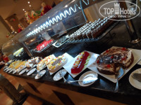 Питание довольно разнообразное. Огромное количество овощей. Мама была этому несказанно рада. Мясо, рыба, паста, супы, всё было очень вкусно. Конечно, где-то меню повторялось, но вы в 4* и странно, если хотите увидеть там гастрономическое разнообразие как в ресторанах Франции. Десерты выше всяких похвал, много и вкусно. Фрукты: бананы, финики, яблоки, дыни каждый день. В 18-00 у бассейна жарят блинчики, в общем, голодными там не останетесь. Раз в неделю проводят ужин в восточном стиле (еда, интерьер, одежда работников ресторана, всё в стиле Египта). Отдельное спасибо за поздравление с Днём Рождения и торт для мамы. Это было оригинально с игрой на дарбуке (барабане), маме очень понравилось.